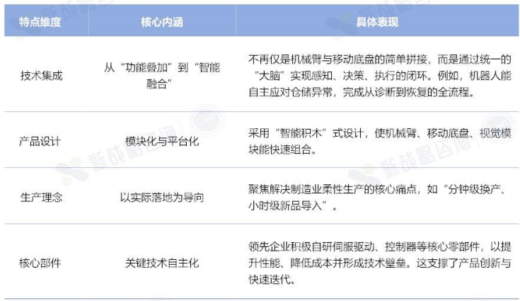 跟着多模态大模子取具身智能的融合,复合机械人正从 “东西”向“智能体” 演进,成为鞭策财产升级取社会前进的焦点引擎。将来,复合机械人财产链的成长将呈现以下趋向?。 供应链协同强化!区域性的财产链协同将遭到注沉。例如,京津冀地域正正在通过政策指导,搭建供需对接平台,旨正在提拔区域财产链的全体韧性和合作力。 手艺融合深化!财产链的协同立异将愈加慎密,出格是取A1、5G等新手艺的融合努力于打制同一的“机械脑”,实现更高条理的自从决策和集群协做。 复合机械人融合了自从挪动平台取细密操做机械臂,其上逛焦点供应链是确保机械人机能取靠得住性的基石。目前,上逛供应链呈现“焦点部件国产替代加快、高端市场国际垄断仍存的款式。 目前,达明机械人产物线C、半导体、汽车制制等沉点行业。特别正在半导体范畴,达明通过供给客制化的AMR节制软件,并连系高精度手臂取靠得住视觉,设想出包含公用夹具取质量防呆流程的全体处理方案,成为行业头部企业的焦点供应商。 复合机械人中逛本体系体例制范畴正处正在快速演进阶段,其焦点特征是从单一功能的“施行东西”向“-决策-施行”一体化的智能体跃迁。目前,该范畴呈现出从“功能叠加”到“智能融合”、模块化取平台化、以现实落地为导向、环节手艺自从化等特点。 响应柔性制制的焦点需求:现代制制业面对小批量、多品种的出产挑和,要产线能快速调整。它们可以或许替代保守固定工位,实现物料正在工位间的自支流转和精准功课,极大提拔了产线的柔性。 从使用次要环节看,产线%,其次是工序间物流转运,使用率达到58。33%,质量检测余巡检使用率42。67%,仓储拣拔取搬运为33。33%,设备取操做使用率20。83%;尝试室样本传送取处置使用率为8。33%。
